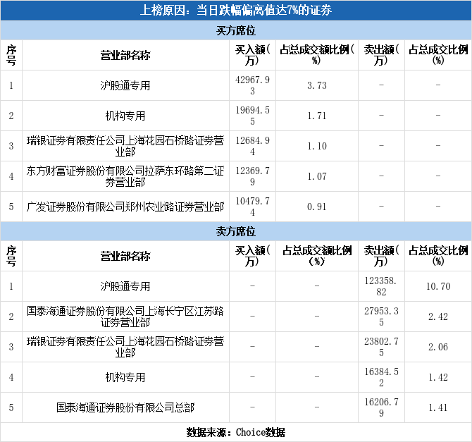今日龙虎榜单上出现了沪股通的身影,占据了买一、卖一的位置,净卖出8.04亿,占当日成交总额的6.97%。除此之外沪股通还参与到了日出东方、国新能源、三元股份等6只个股中,其中3家呈现沪股通净买入,获净买入最多的是日出东方,净买额为2845.99万元;3家呈现沪股通净卖出,遭净卖出最高的为立达信,净卖额为2129.59万元。