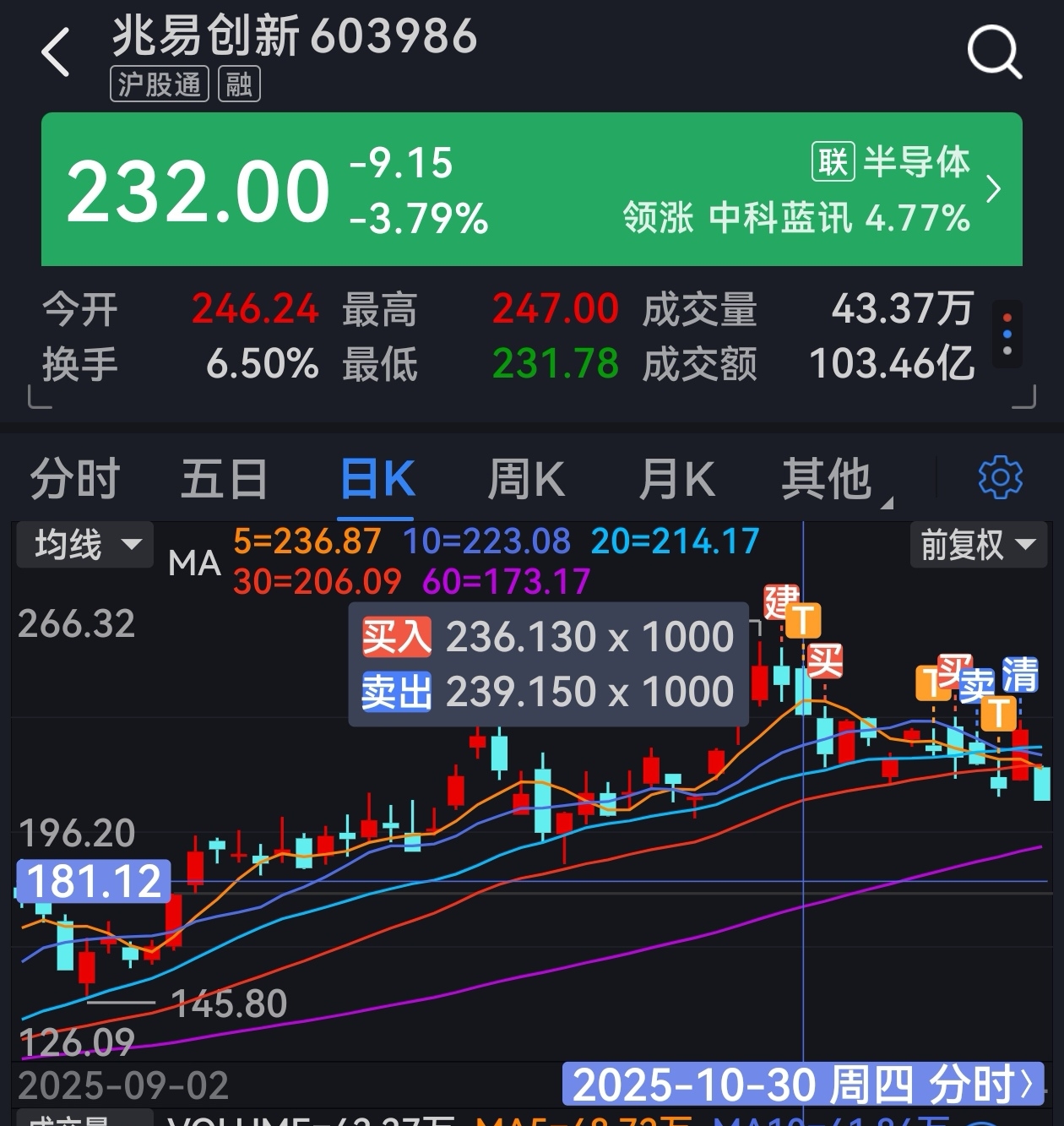 240开始建仓,到周四清仓。搞得心力交瘁,每天早盘冲高就下跌。周四强势涨停,毫不
