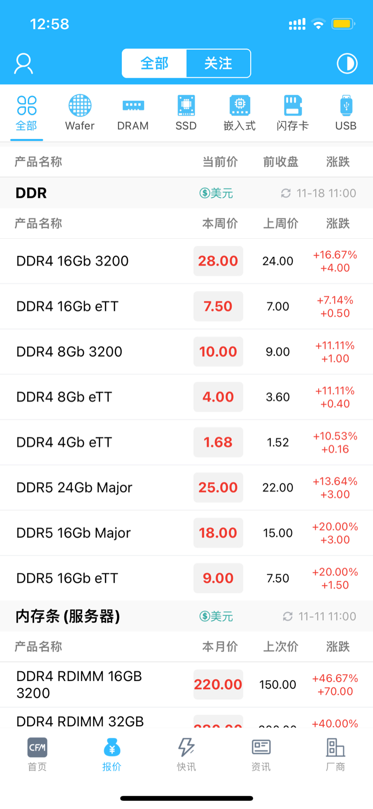 $兆易创新(SH603986)$ 本周报价新鲜出炉,ddr4继续起飞,我看主力还能压多久
