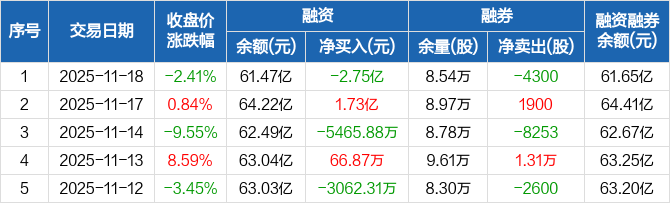 兆易创新:融资净偿还2.75亿元,两市排名第七(11-18)