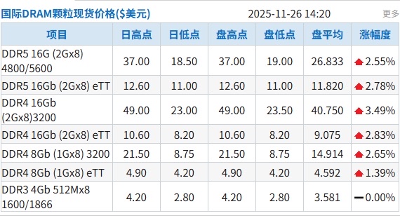 内存卡报价天天涨,DDR4 10月31号26美金,今天超40美金了