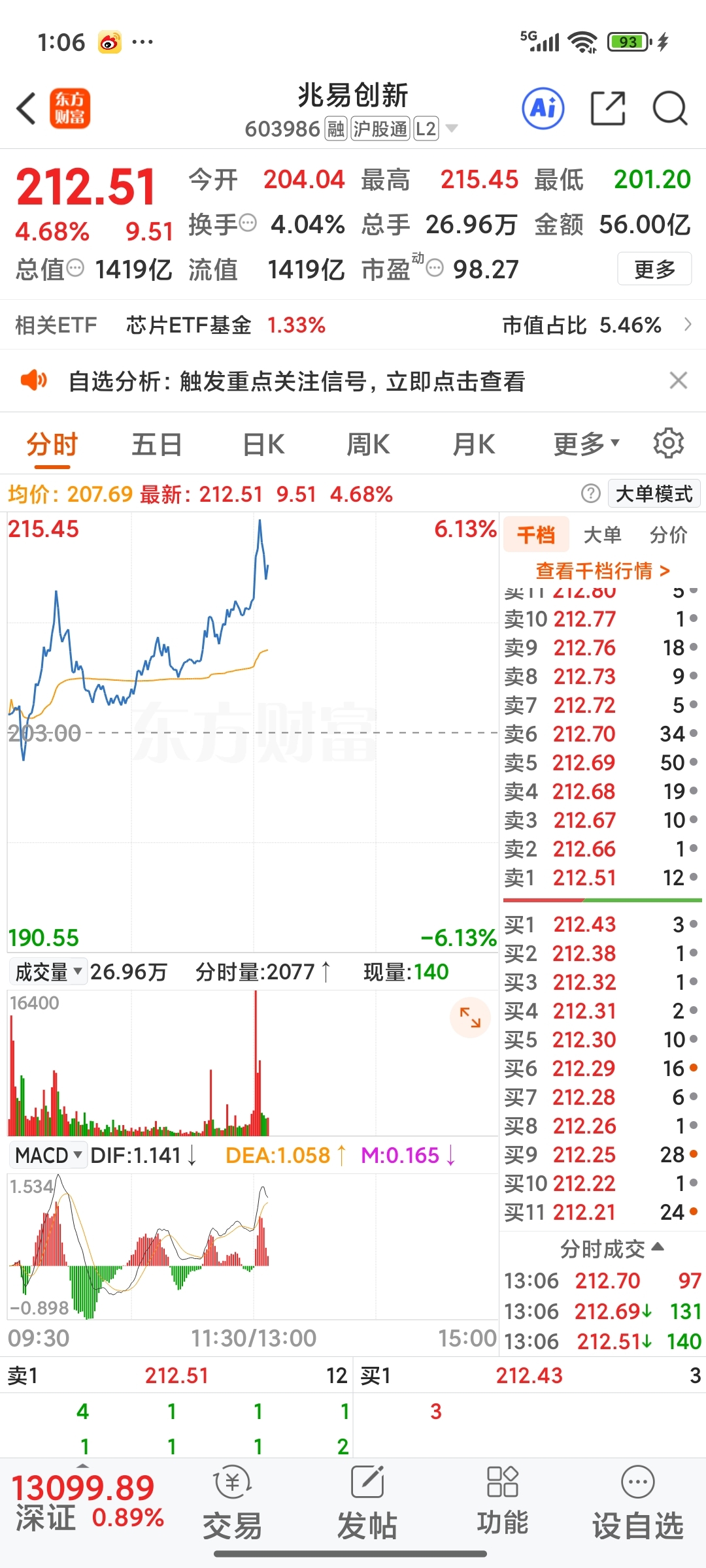 $兆易创新(SH603986)$ 又到极限了,强弩之末。必须卖出