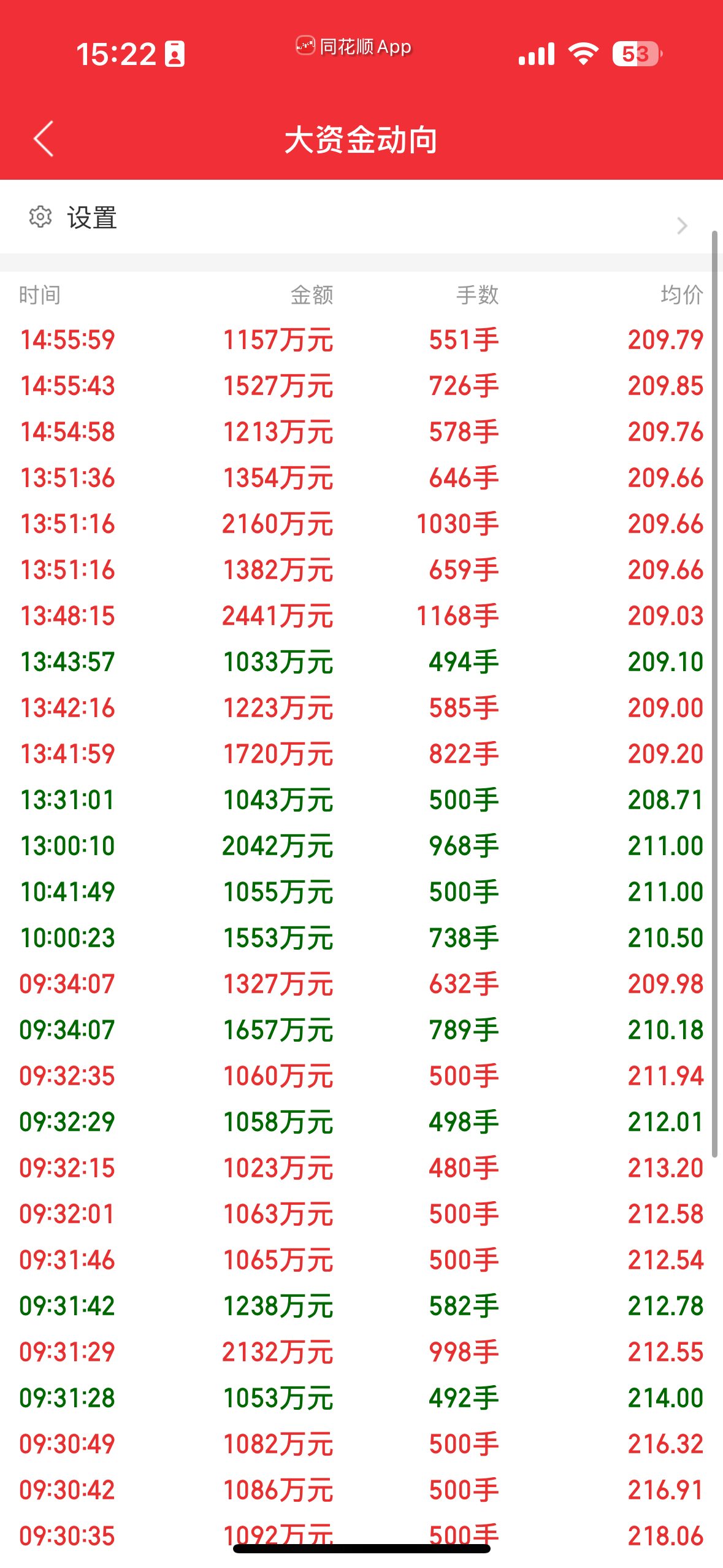 同花顺显示大额资金买卖总计 33 笔