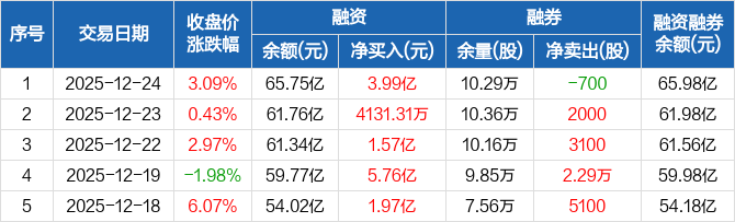 兆易创新:融资余额65.75亿元,创历史新高(12-24)