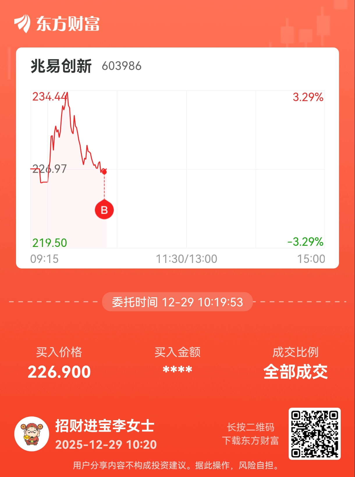 温馨提示: 1.根据《证券法》规定,禁止编造、传播虚假信息或者误导性信息,扰乱证券市场;2.用户在本社区发表的所有资料、言论等仅代表个人观点,与本网站立场无关,不对您构成任何投资建议。用户应基于自己的独立判断,自行决定证券投资并承担相应风险。《东方财富社区管理规定》