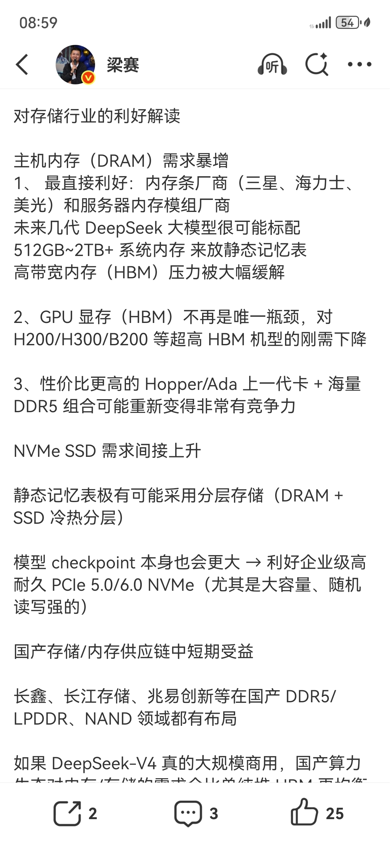 $兆易创新(SH603986)$ DeepSeek最新论文,最大利好存储
