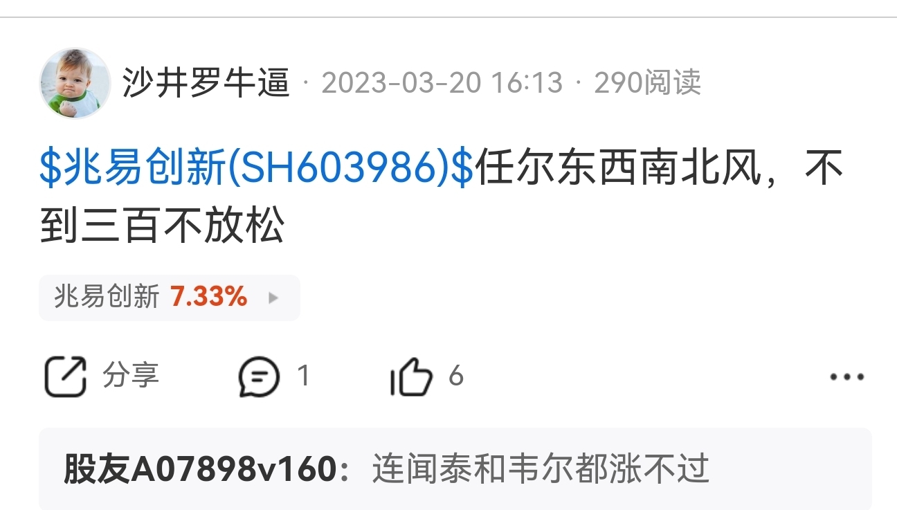 温馨提示: 1.根据《证券法》规定,禁止编造、传播虚假信息或者误导性信息,扰乱证券市场;2.用户在本社区发表的所有资料、言论等仅代表个人观点,与本网站立场无关,不对您构成任何投资建议。用户应基于自己的独立判断,自行决定证券投资并承担相应风险。《东方财富社区管理规定》
