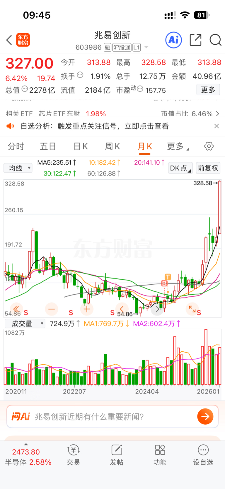 $兆易创新(SH603986)$ 没赚钱的命,88买了你买汇顶,我是多蠢
