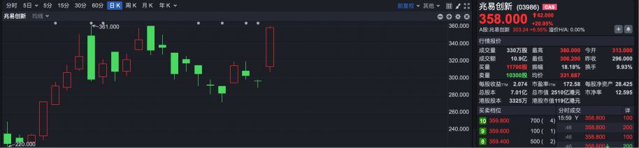 市场热点方面,半导体龙头兆易创新(HK03986)涨超20%。
