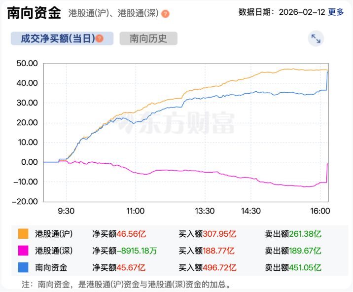 资金方面,南向资金表现积极。截至收盘,南向资金净买入港股超45亿港元。