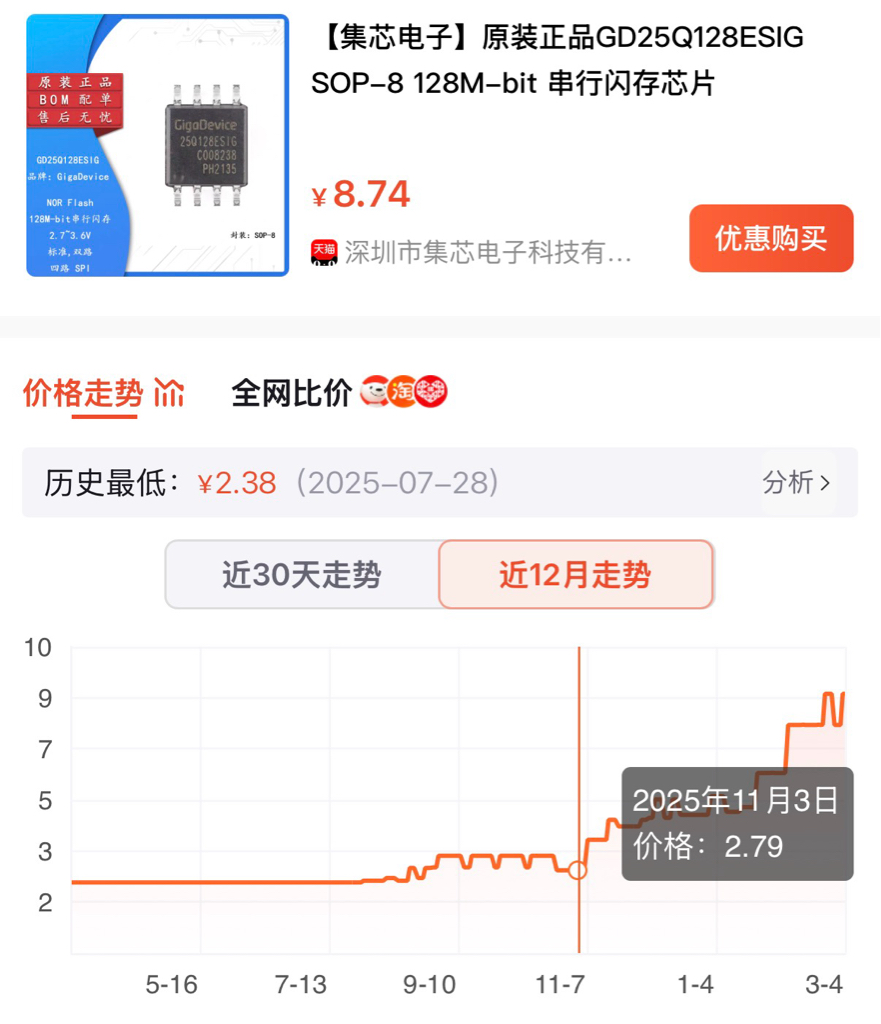 $兆易创新(SH603986)$ 我就放一张图大家看看现在的兆易的产品价格,一季度的利润大家自己按计算器吧。只要这个价格能横住,那存储就是今年最靓的仔