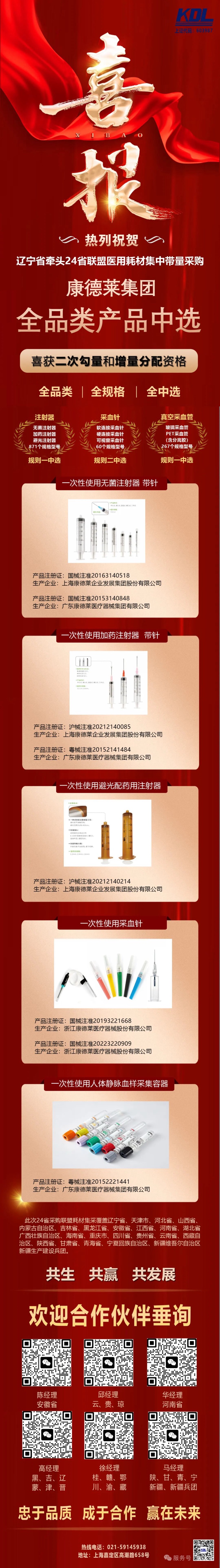 喜报|康德莱集团成功中选辽宁省牵头24省联盟医用耗材集中带量采购。