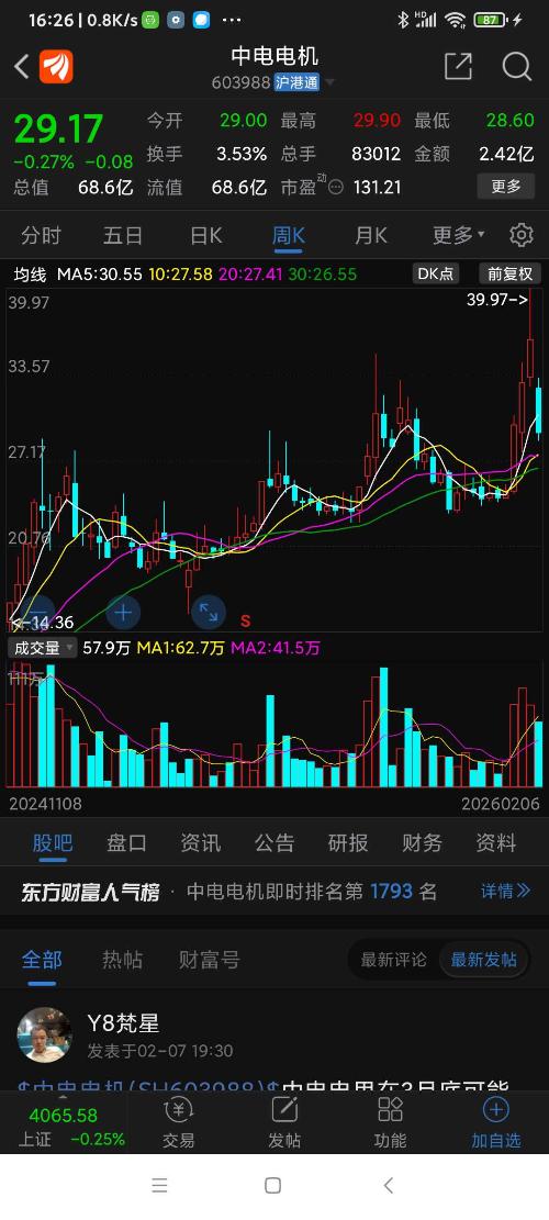 中电电机,上周因减持利空而致八连跌,主力已控盘,质次价高,远离。