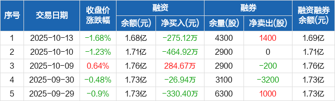 艾华集团:融资净偿还275.12万元,融资余额1.68亿元(10-13)