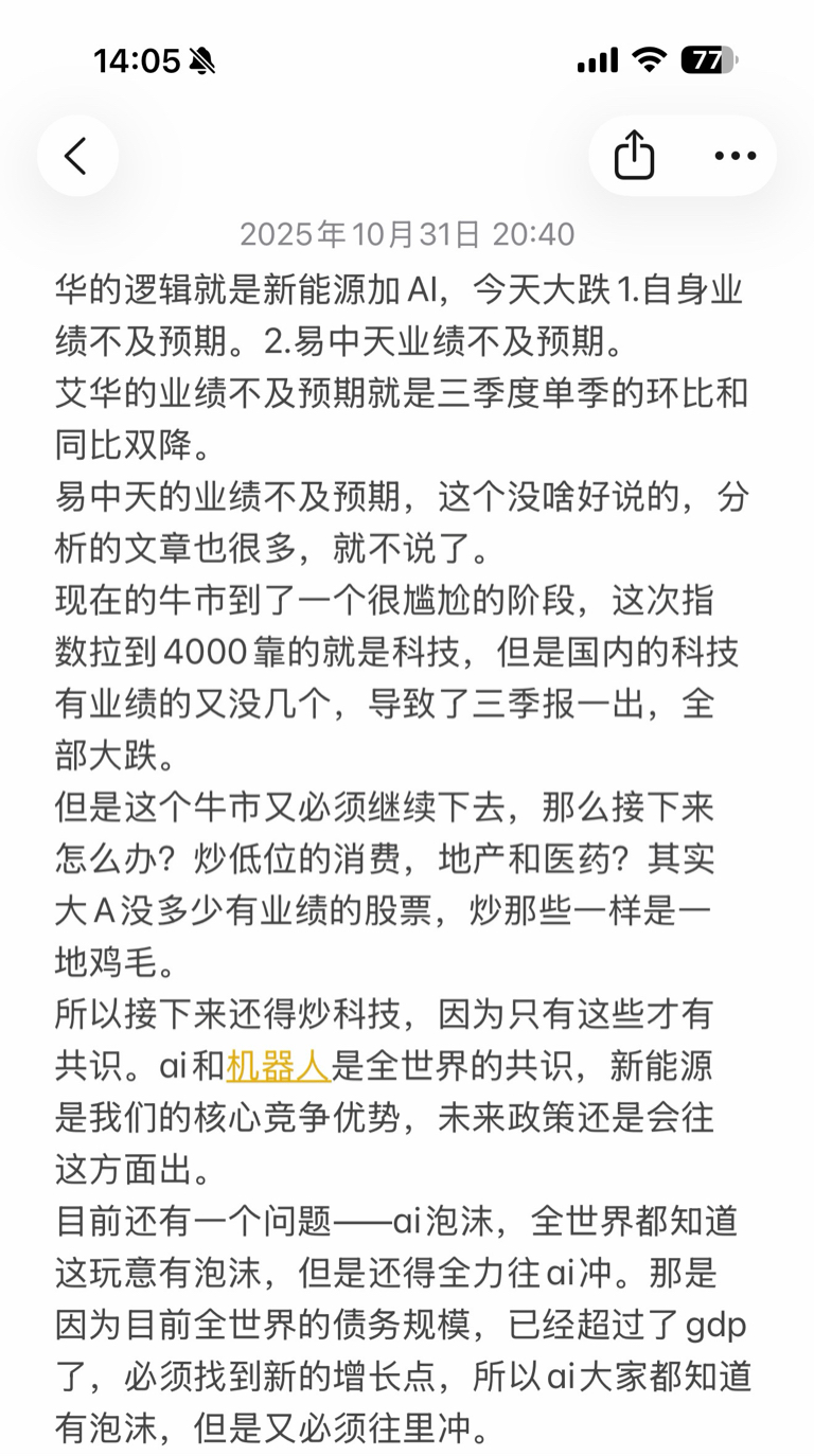 昨天简单写了些对于艾华和ai以及新能源的看法,但是没发出来。估计是写的太真实了,