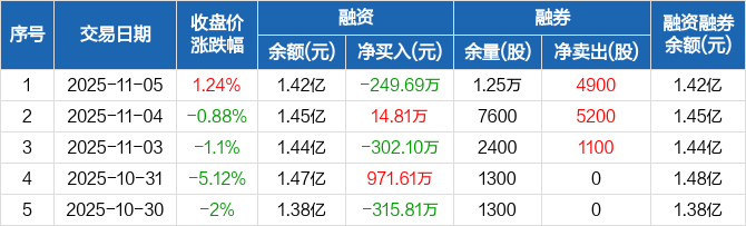 艾华集团:融资净偿还249.69万元,融资余额1.42亿元(11-05)