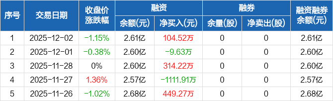麦迪科技:融资净买入104.52万元,融资余额2.61亿元(12-02)