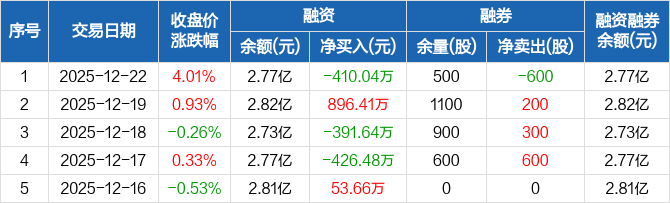 麦迪科技:融资净偿还410.04万元,融资余额2.77亿元(12-22)