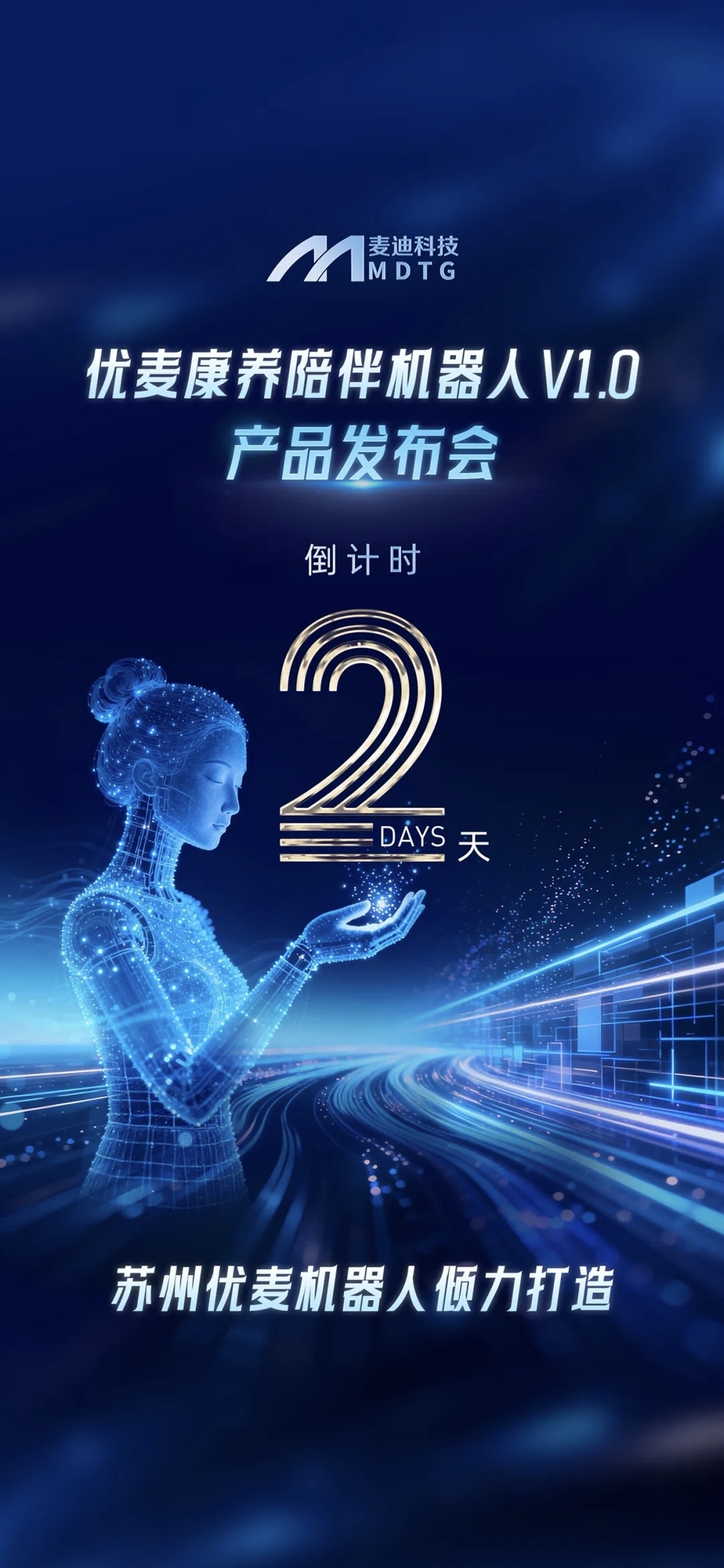 下周一,麦迪科技+优必选发布康养人形机器人V1.0