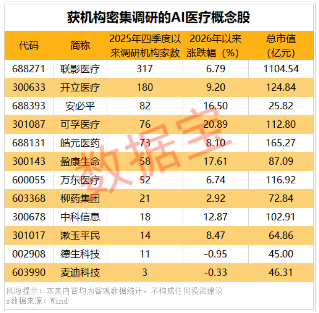 万亿级AI医疗市场,科技巨头接连出手,麦迪也是获机构密集调研的AI概念股之一。
