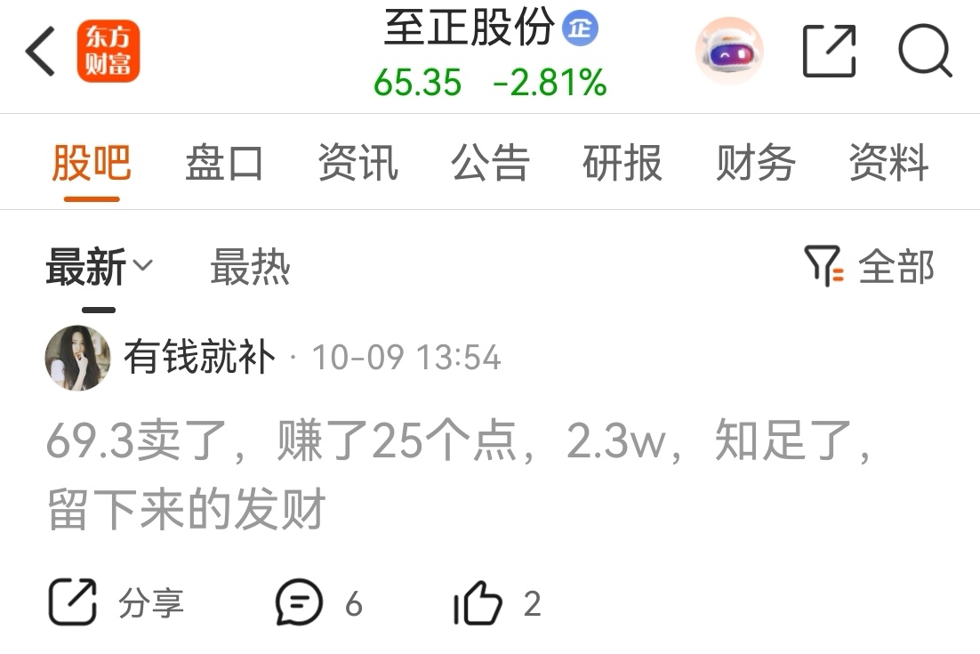温馨提示: 1.根据《证券法》规定,禁止编造、传播虚假信息或者误导性信息,扰乱证券市场;2.用户在本社区发表的所有资料、言论等仅代表个人观点,与本网站立场无关,不对您构成任何投资建议。用户应基于自己的独立判断,自行决定证券投资并承担相应风险。《东方财富社区管理规定》
