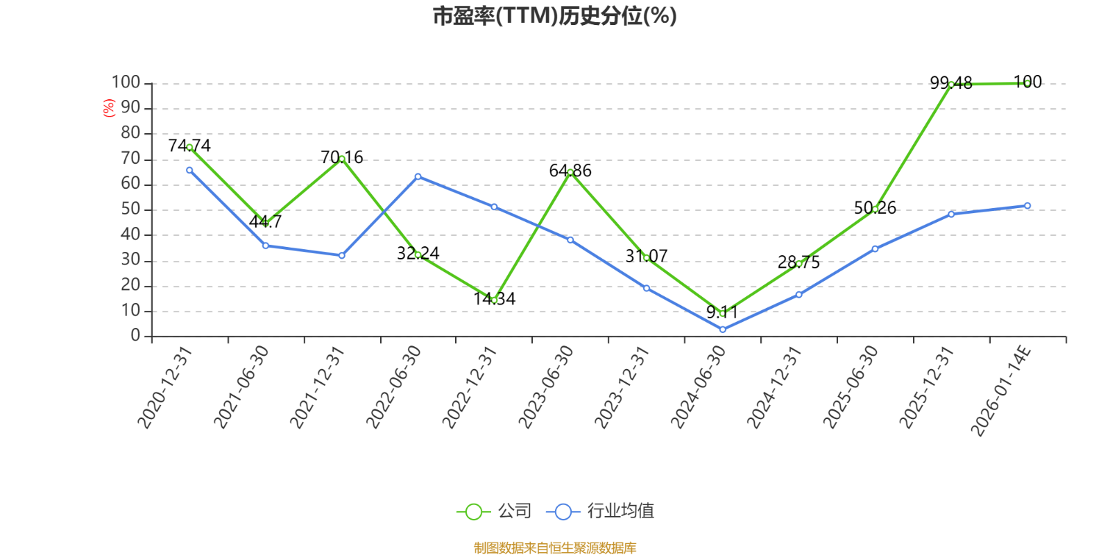 市盈率、市净率为负时,不显示当期分位数,会导致折线图中断。