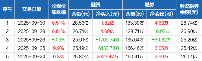 洛阳钼业:融资余额28.53亿元,创近一年新高(09-30)