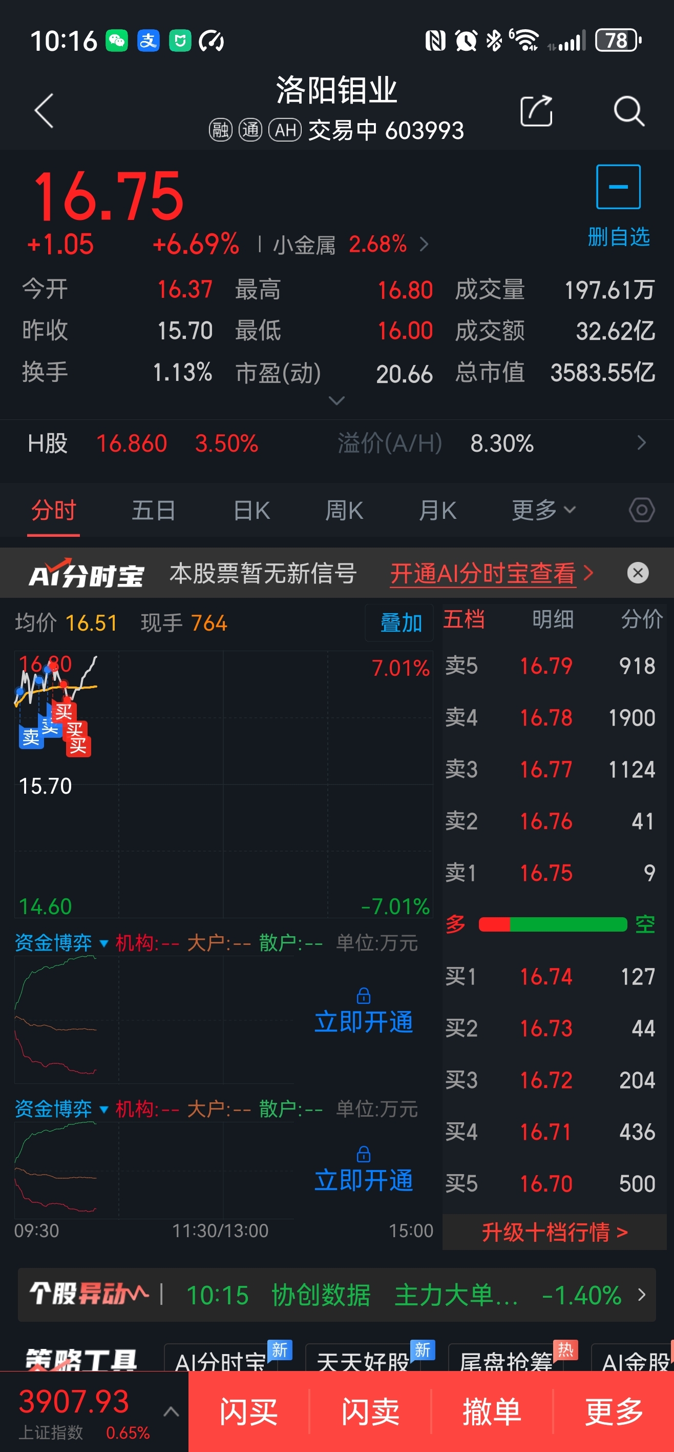 $洛阳钼业(SH603993)$ 今天T了30W股,不知道算不算大宗交易