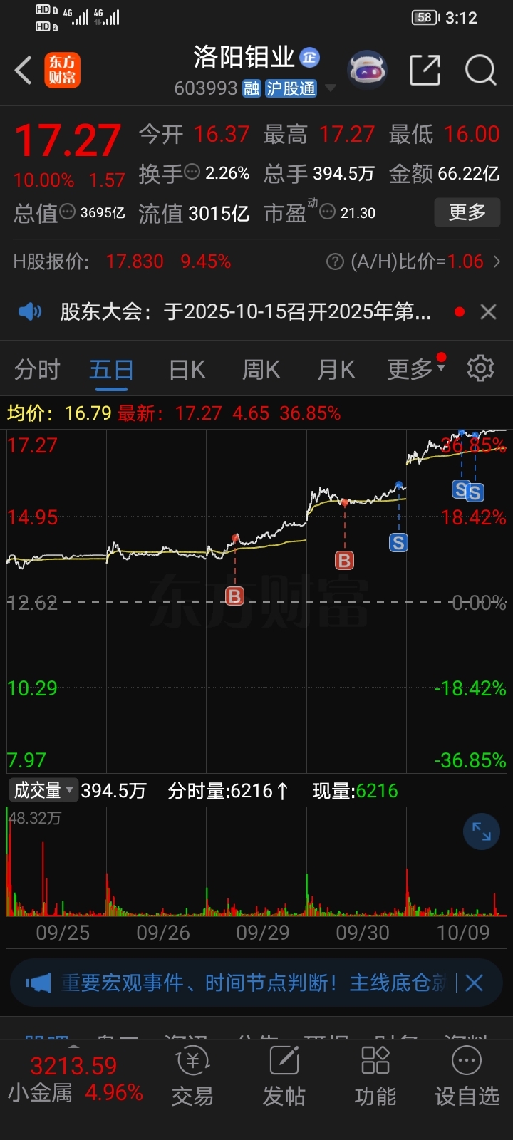 $洛阳钼业(SH603993)$ 我胆子小,走了,祝各位道友继续吃肉。