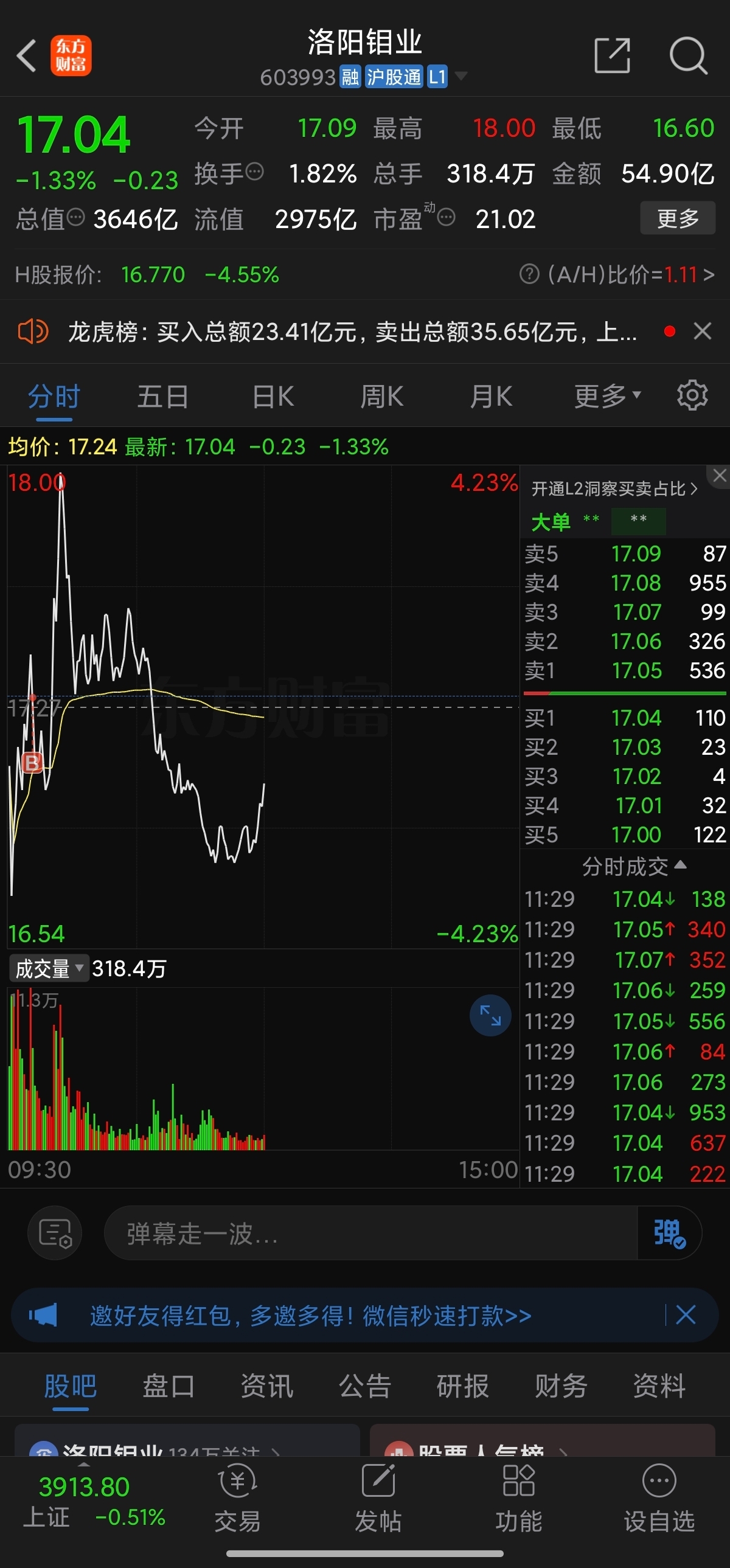 $洛阳钼业(SH603993)$ 今天买中你,真倒霉。。