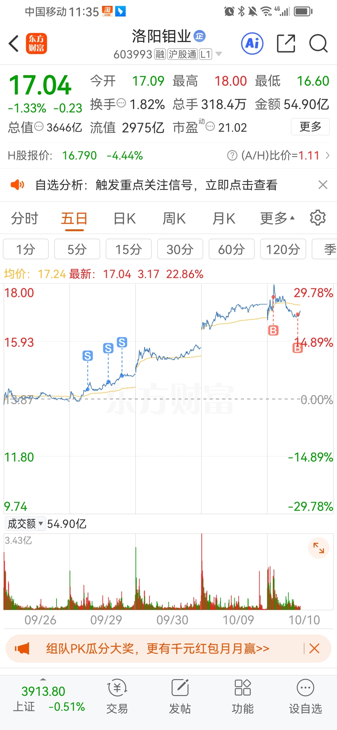 $洛阳钼业(SH603993)$ 洛阳第十次建仓做波段了,上次卖飞了
