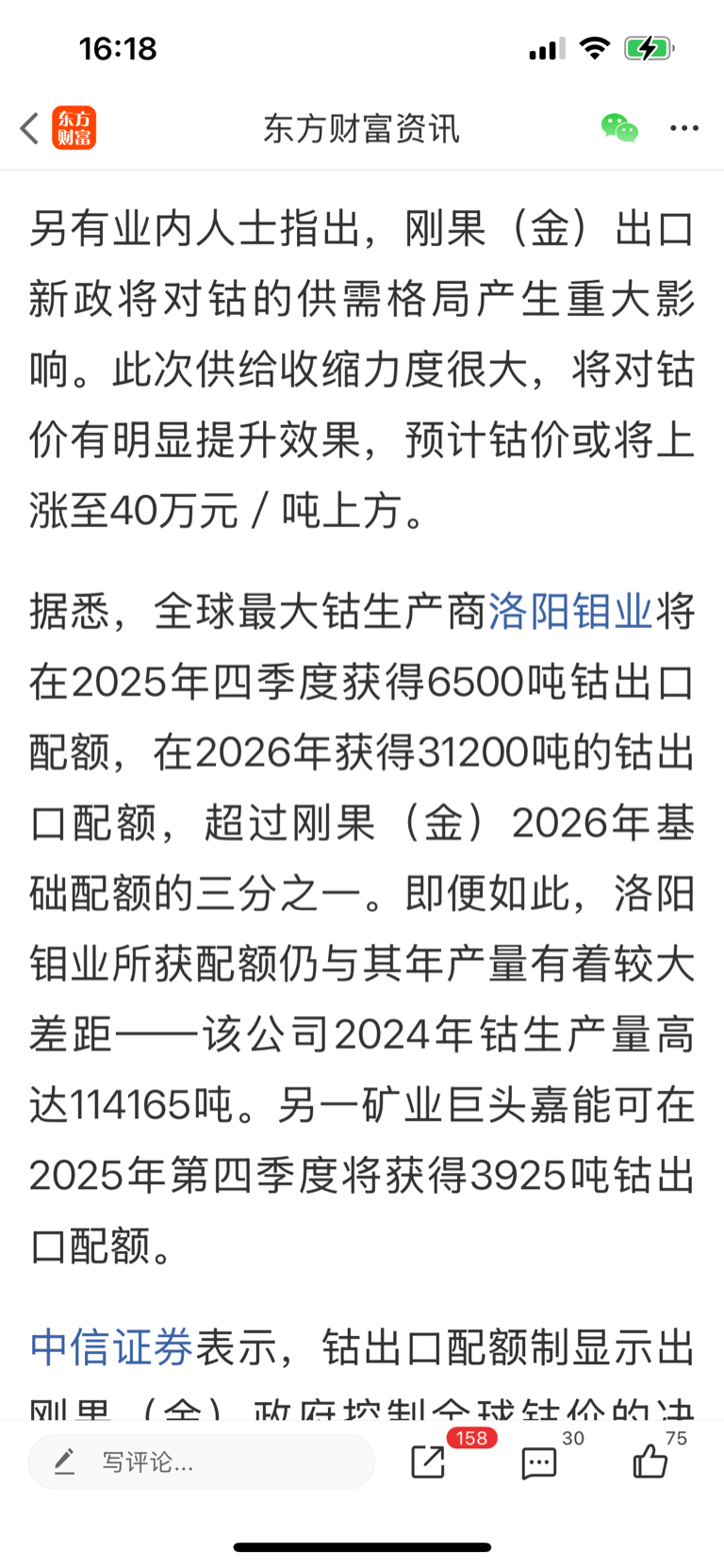 $洛阳钼业(SH603993)$ 刚果金钴配额具体分配落地,看好钴价长牛。