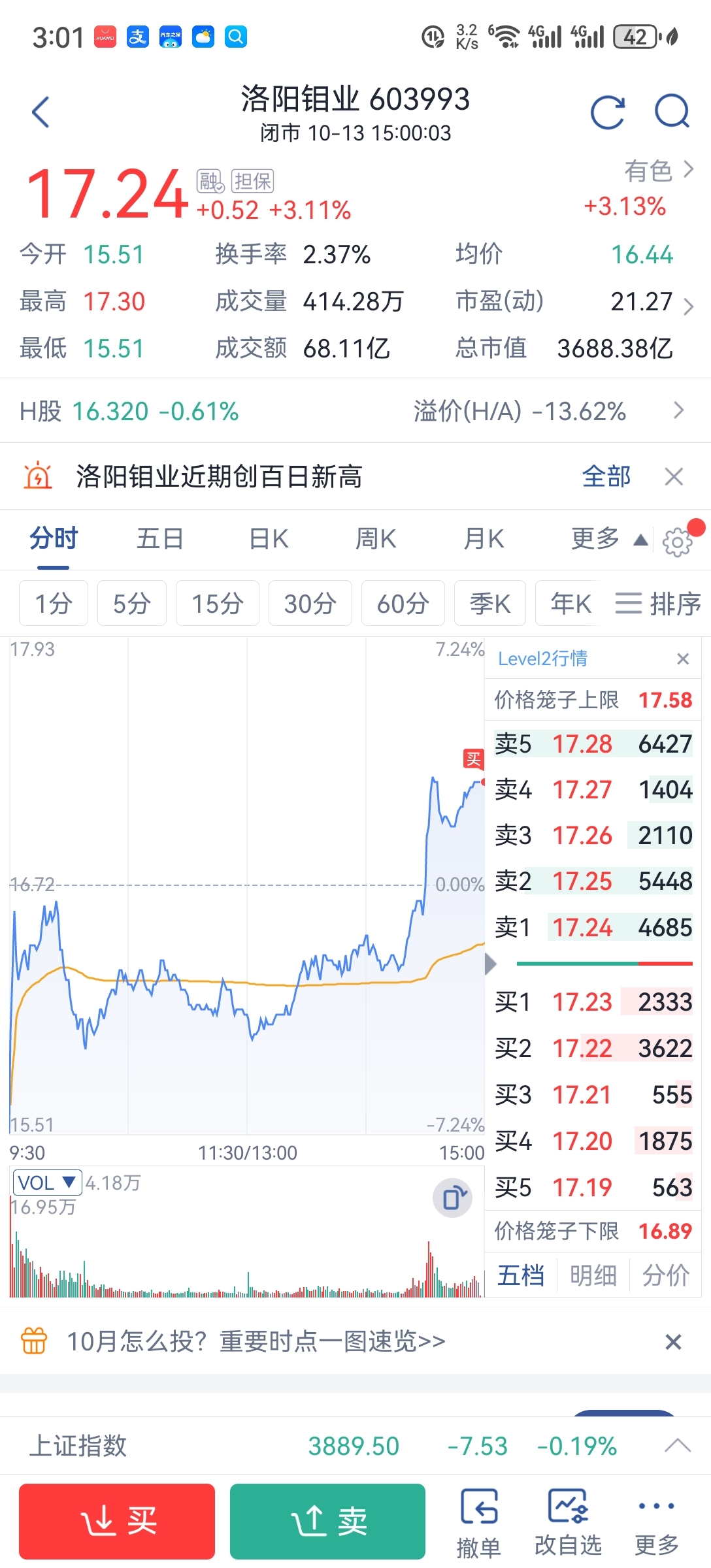$洛阳钼业(SH603993)$ 今天尾盘最高配我进来是喜是忧