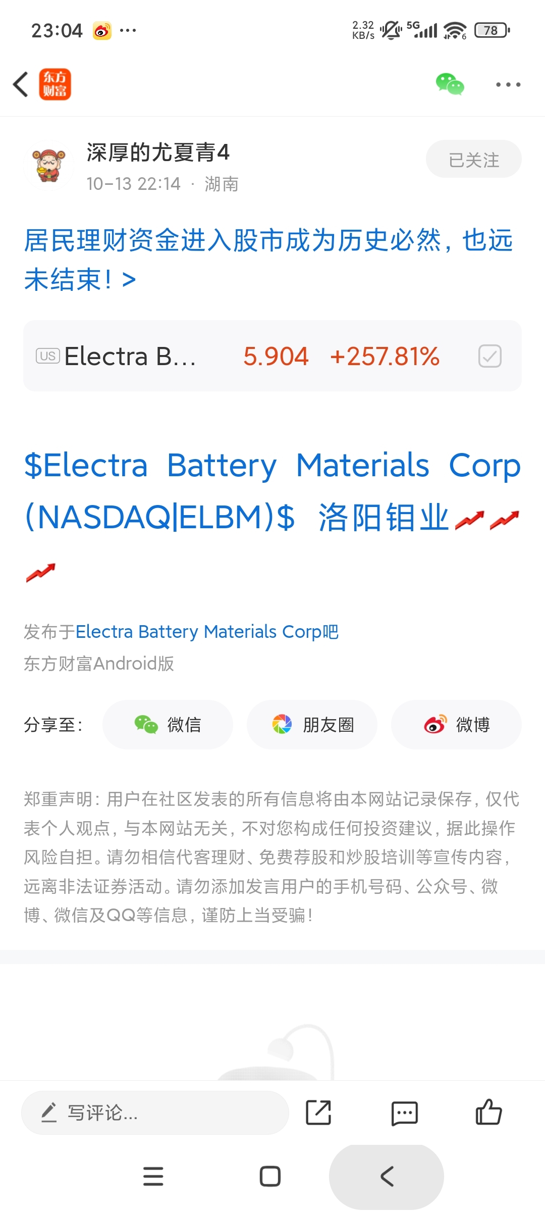 温馨提示: 1.根据《证券法》规定,禁止编造、传播虚假信息或者误导性信息,扰乱证券市场;2.用户在本社区发表的所有资料、言论等仅代表个人观点,与本网站立场无关,不对您构成任何投资建议。用户应基于自己的独立判断,自行决定证券投资并承担相应风险。《东方财富社区管理规定》