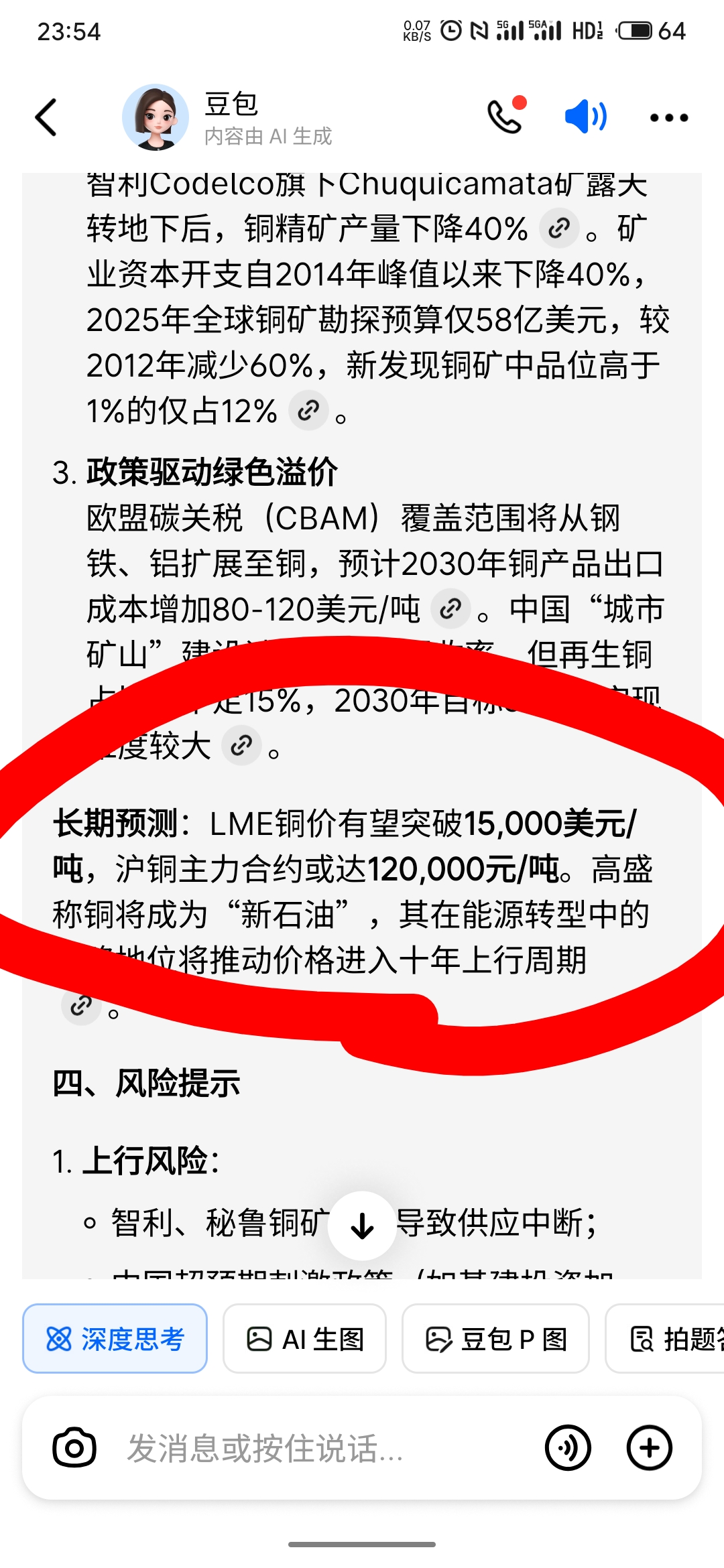 豆包给的中长期投资伦铜价格在12000每吨,长期有望15000每吨,螺母股价应该