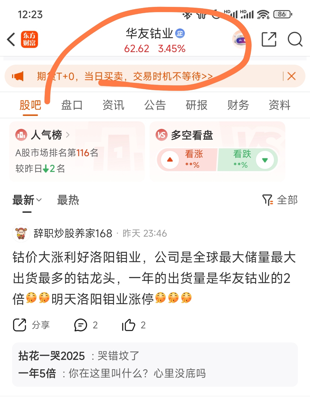 有人看到铜下跌,都去华友钴业那叫了。虽然我也长期看好洛阳钼业,但能不能不要这么搞