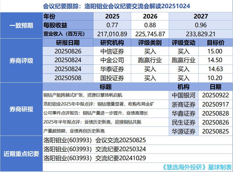 会议纪要跟踪:洛阳钼业会议纪要交流会解读20251024