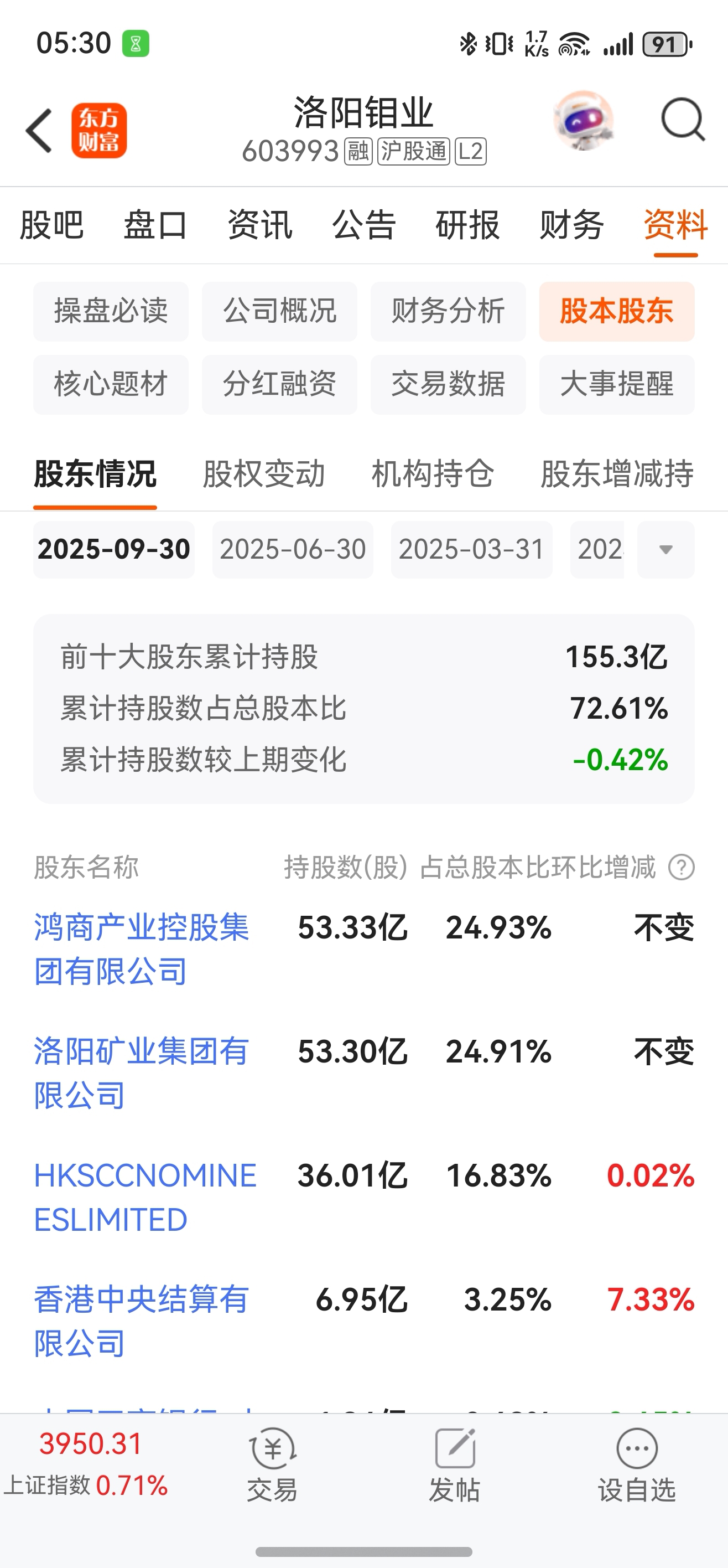$洛阳钼业(SH603993)$ 外资进来抬轿子了。
