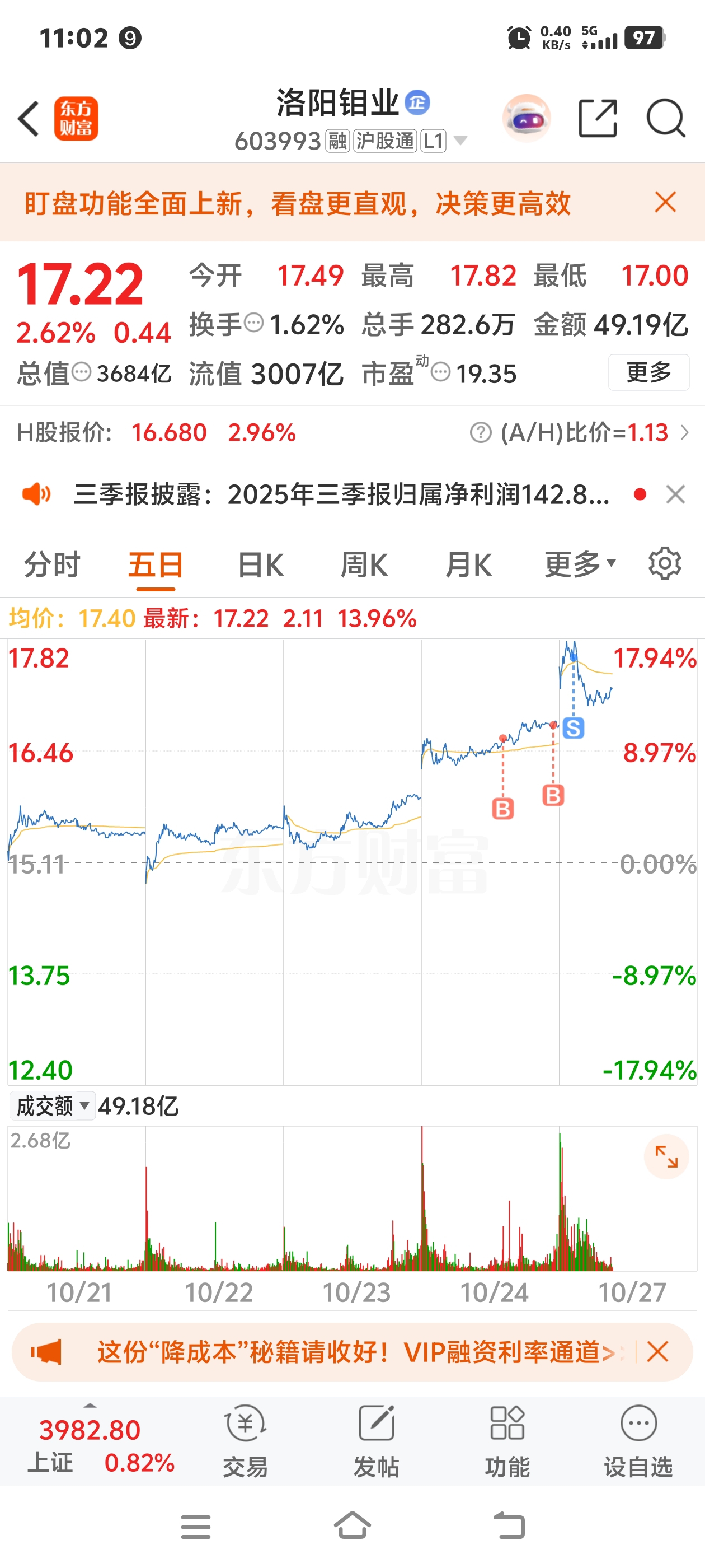 $洛阳钼业(SH603993)$ 5个多点也是肉