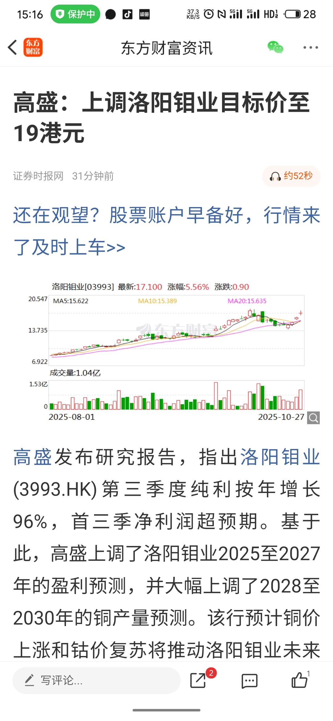 $洛阳钼业(SH603993)$ 不管明天怎么走,最近一两个月肯定要破前高