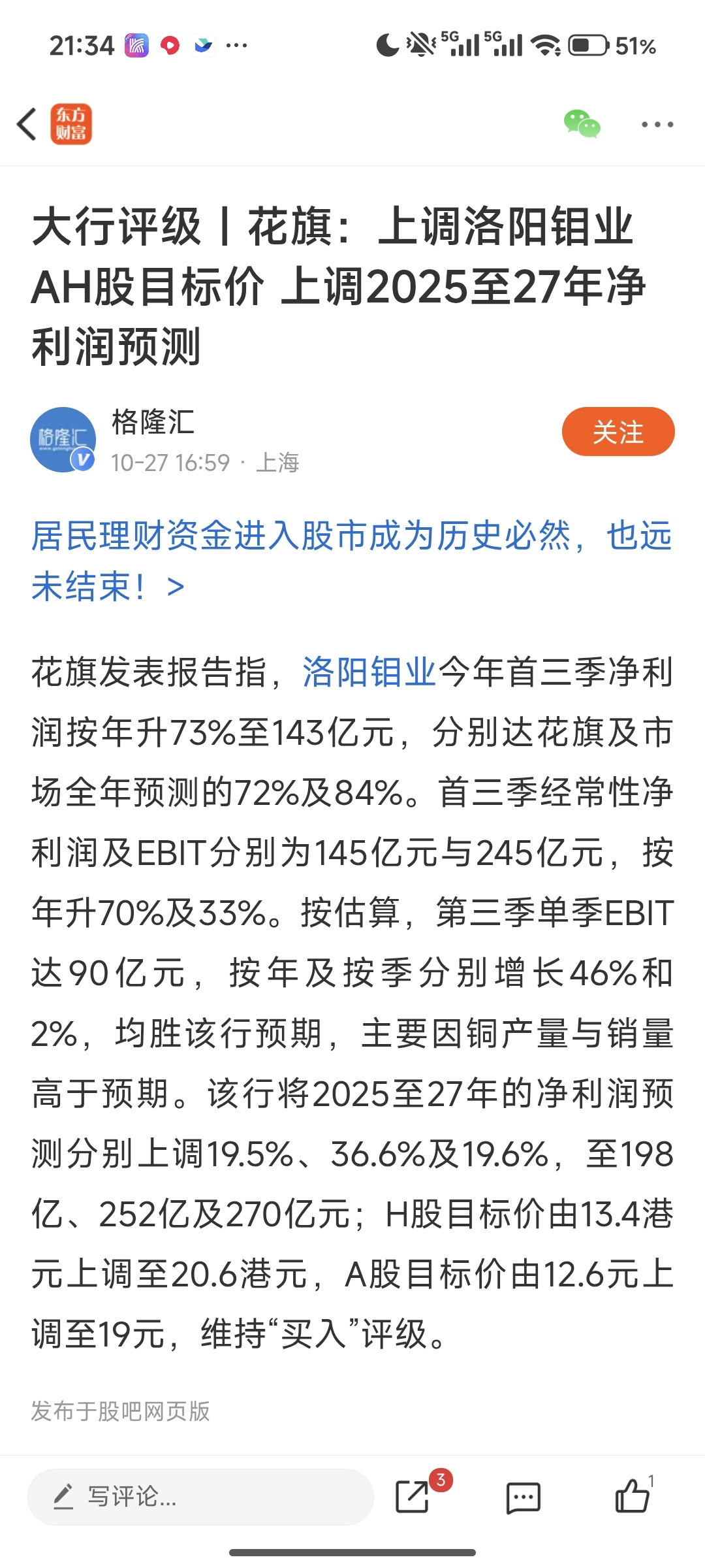 $洛阳钼业(SH603993)$ 会有机构和散户跟风买进吗?