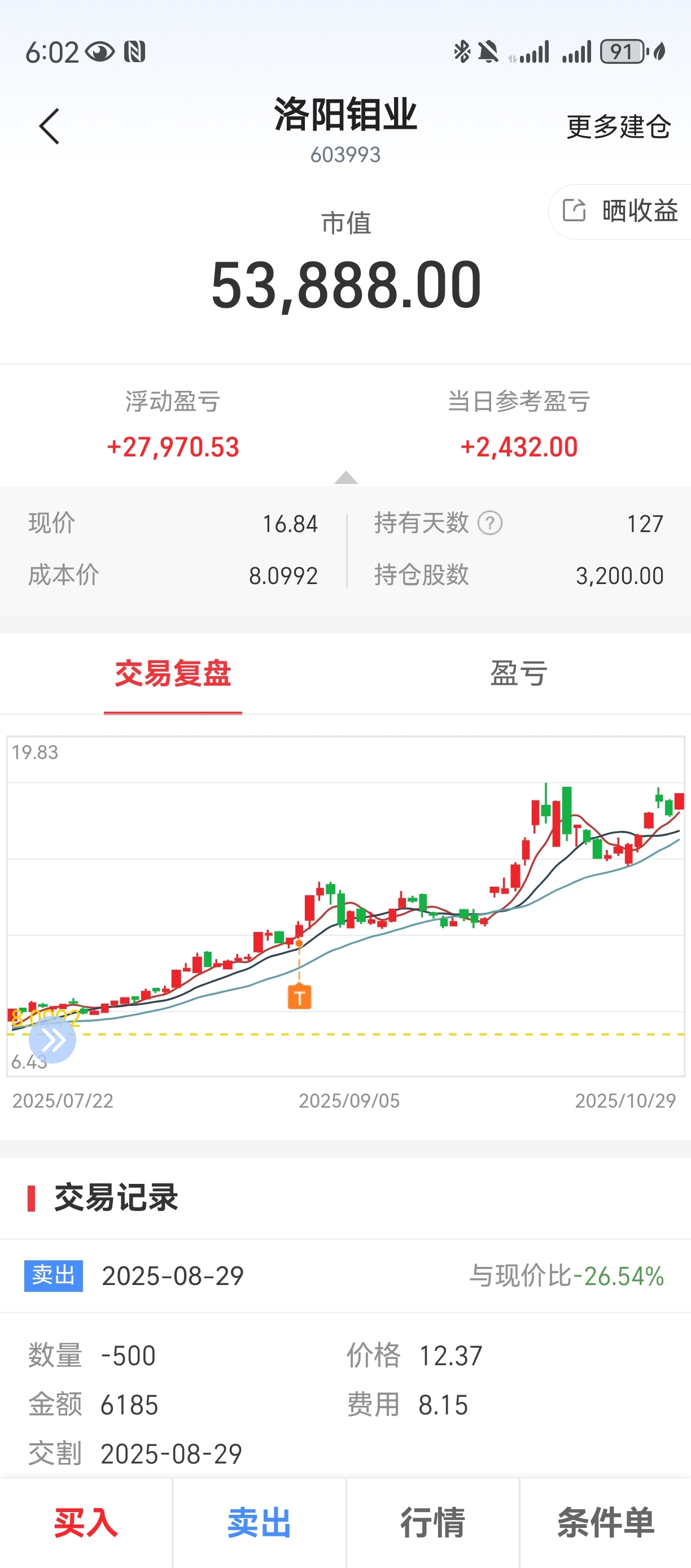 $洛阳钼业(SH603993)$ 翻倍了想卖一半然后让利润奔跑 是卖还是继续拿着啊