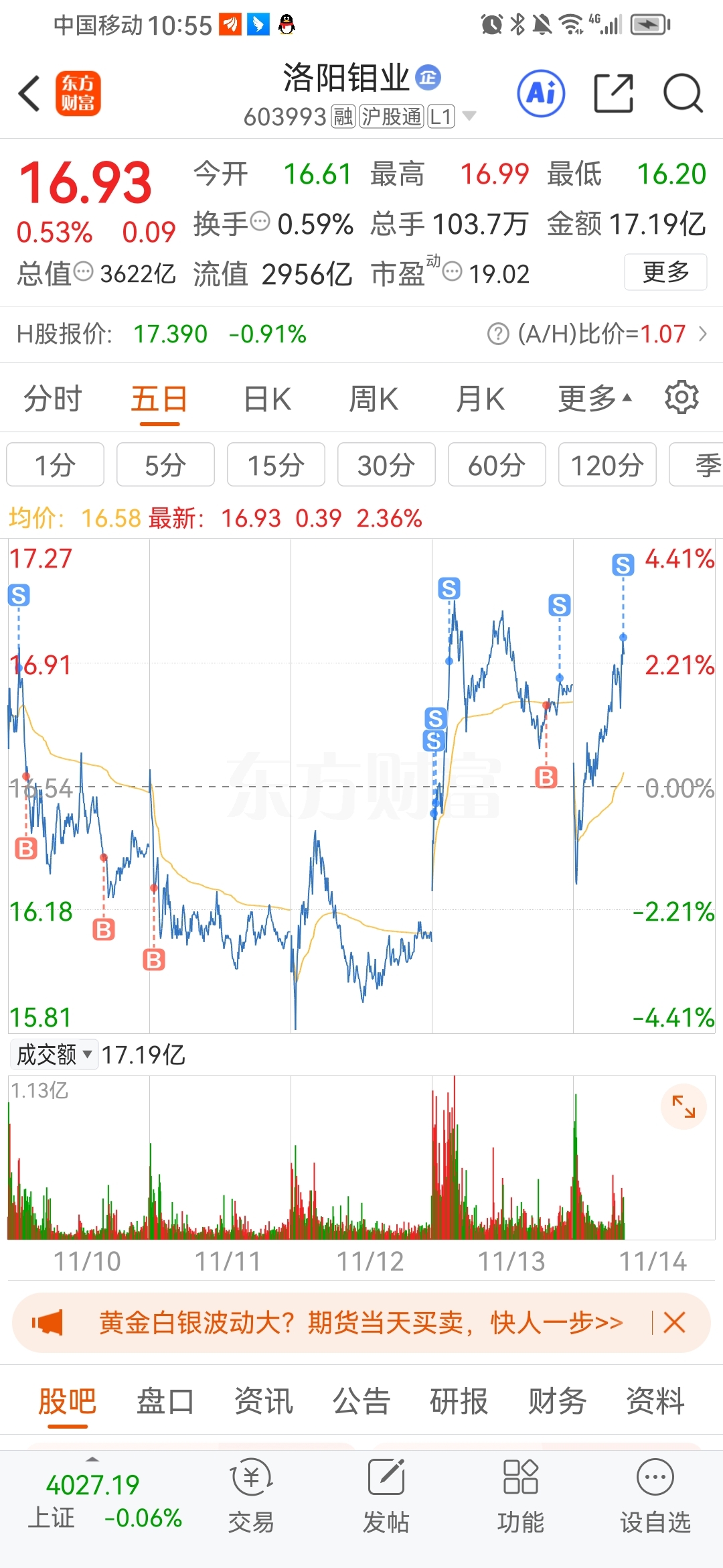 $洛阳钼业(SH603993)$ 洛阳第十波段,目前结束了,等下一波继续