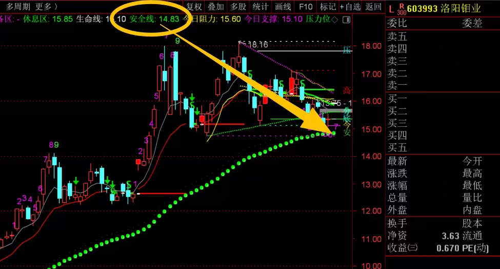 $洛阳钼业(SH603993)$ 近期主要是走回落调整的态势,这里到了临界点区间,一个是60日线14.83位置,一个是安全线也是14.83位置,都很接近。接下来重点就盯着这个临界区域,能站稳都好说,继续看震荡,但如果有效跌破就要注意破位风险了,严格控制仓位应对。