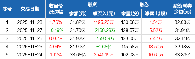洛阳钼业:融资净买入1195.23万元,融资余额31.82亿元(11-28)