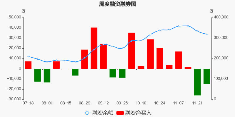 洛阳钼业本周(2025/11/24-2025/11/28)累计涨幅达6.92%,截至11月28日最新股价报收16.23元。从增量上来看,11月24日至11月28日融资买入交易规模9.61亿元,融资偿还规模11.11亿元,期内融资净偿还1.5亿元。从存量上来看,截止11月30日,洛阳钼业融资融券余额32.03亿元,其中融资余额规模31.82亿元,融券余额规模2111.2万元。