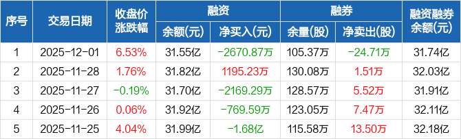 洛阳钼业:融资净偿还2670.87万元,融资余额31.55亿元(12-01)