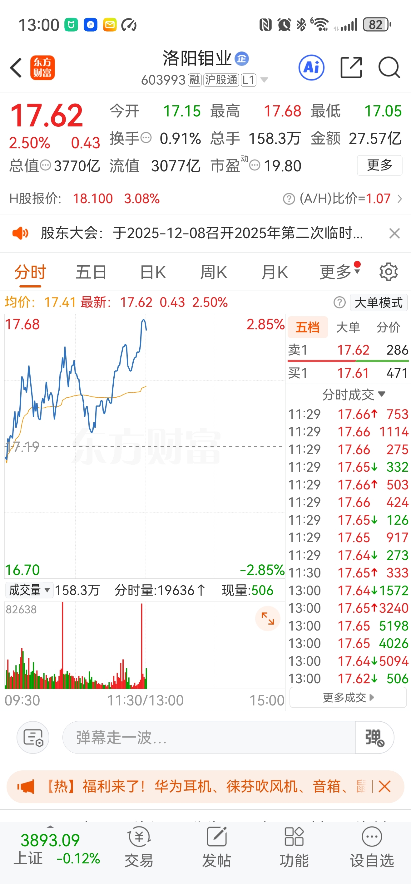 $洛阳钼业(SH603993)$ 是不是打错单了