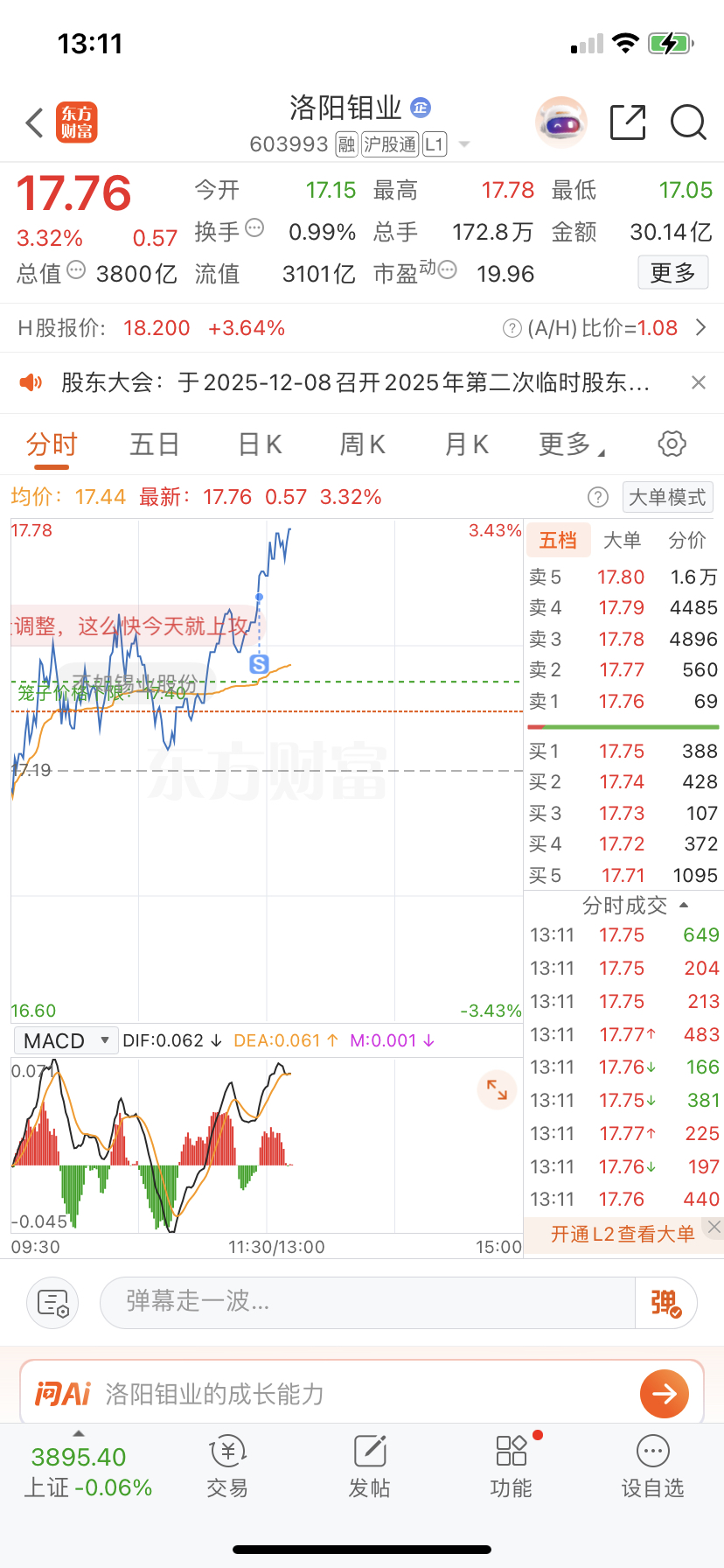 $洛阳钼业(SH603993)$ 我一卖就起飞了,还是要靠我镇场子