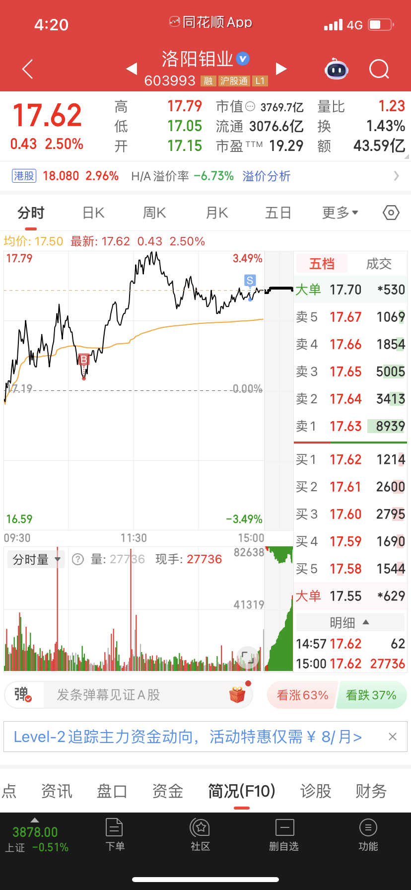 $洛阳钼业(SH603993)$ 每一波起涨前一天都能及时重仓介入,日内点位把握也是精准无比,江湖传说的多空自如大致就是这样吧,佩服